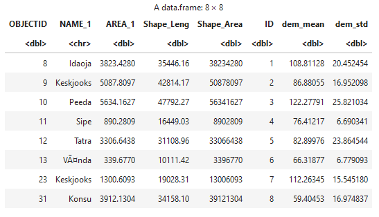 We are now “sourcing” a Python script script1.py, which has a function get_catchment_dem_stats() that return as GeoDataFrame with zonal raster statistics